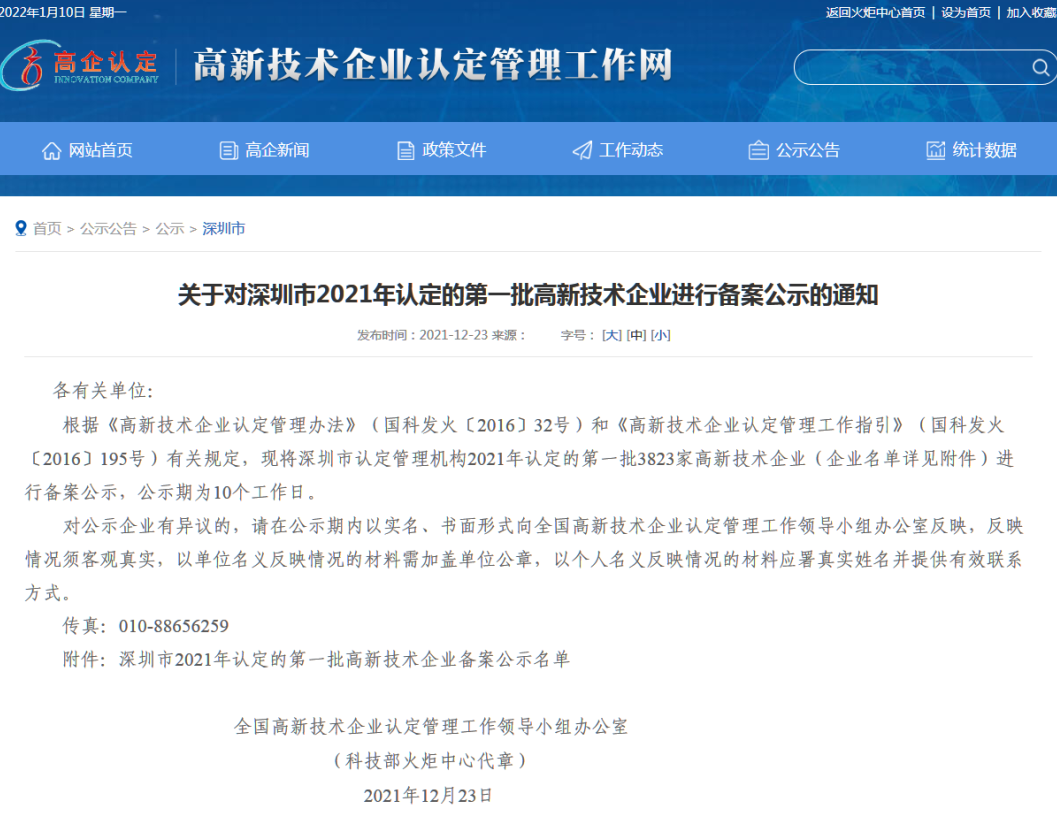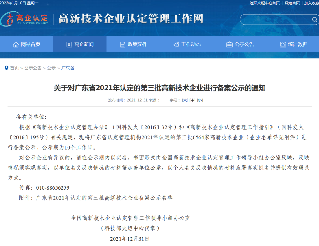 据了解,国家高新技术企业是对国家重点支持的高新技术领域内持续进行科技开发与技术成果转化研究企业的认可,是知识密集、技术密集的经济实体。高新技术企业的评审严格,每三年需重新认定一次。
