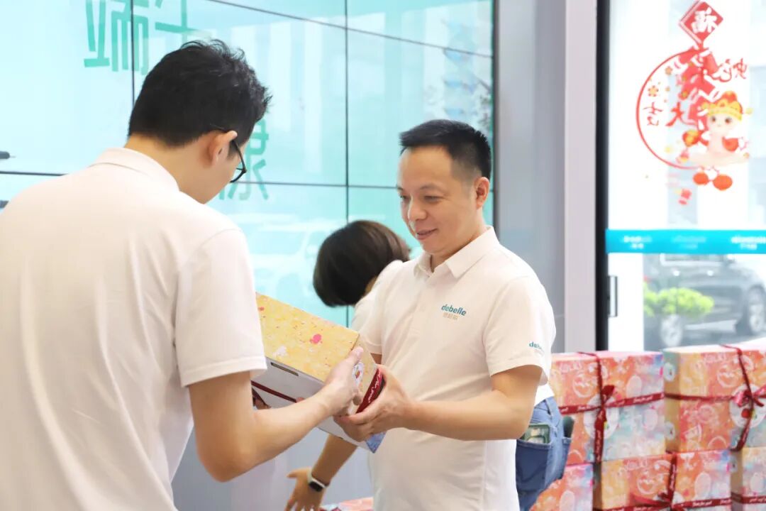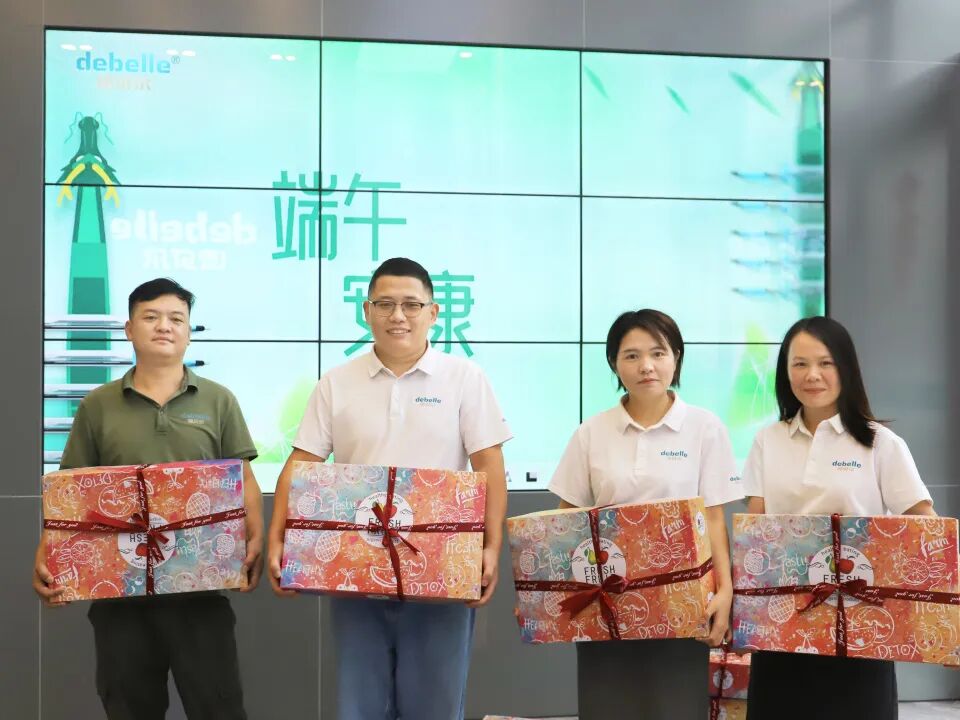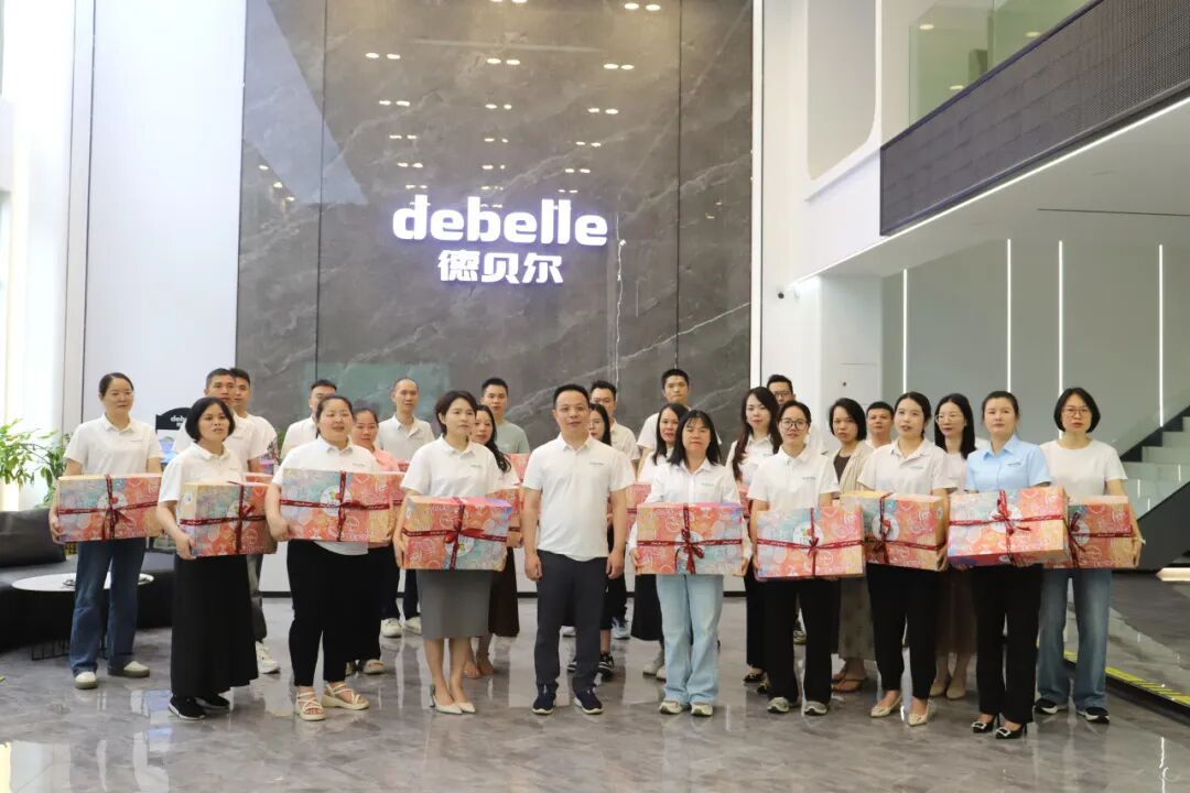 德贝尔为全体员工备下了精心定制的端午礼盒,董事长刘总亲自将一份份心意递到每位员工手中。载满着深切关怀的礼品,不仅串联起彼此的笑颜,更让大家团结在一起,真切感受到德贝尔大家庭的温暖与关怀。